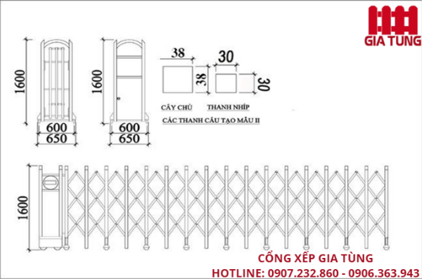 Thông số kỹ thuật cổng xếp inox