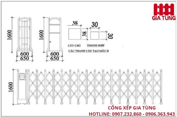 Thông số kỹ thuật cổng xếp inox