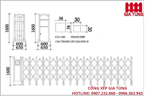 Thông số kỹ thuật cổng xếp inox